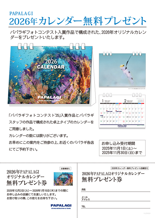 2026年カレンダー無料プレゼントちらし